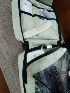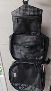 便携性能:大小合适,方便携带,小号比较适合我这种糙男,只放洗面奶,洗发膏和沐浴露后还有很大的空间。 适用场景:短期出差,旅游都很合适。 产品材质:防水性能蛮好的,但拉链好像不是很顺滑,其他都蛮好的。