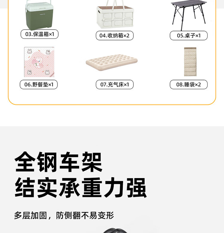 疆屿露营车野营户外折叠手推车野餐摆摊拖斗车儿童可躺超大聚拢营地车 黄白格400L聚拢标准拖斗3秒收纳