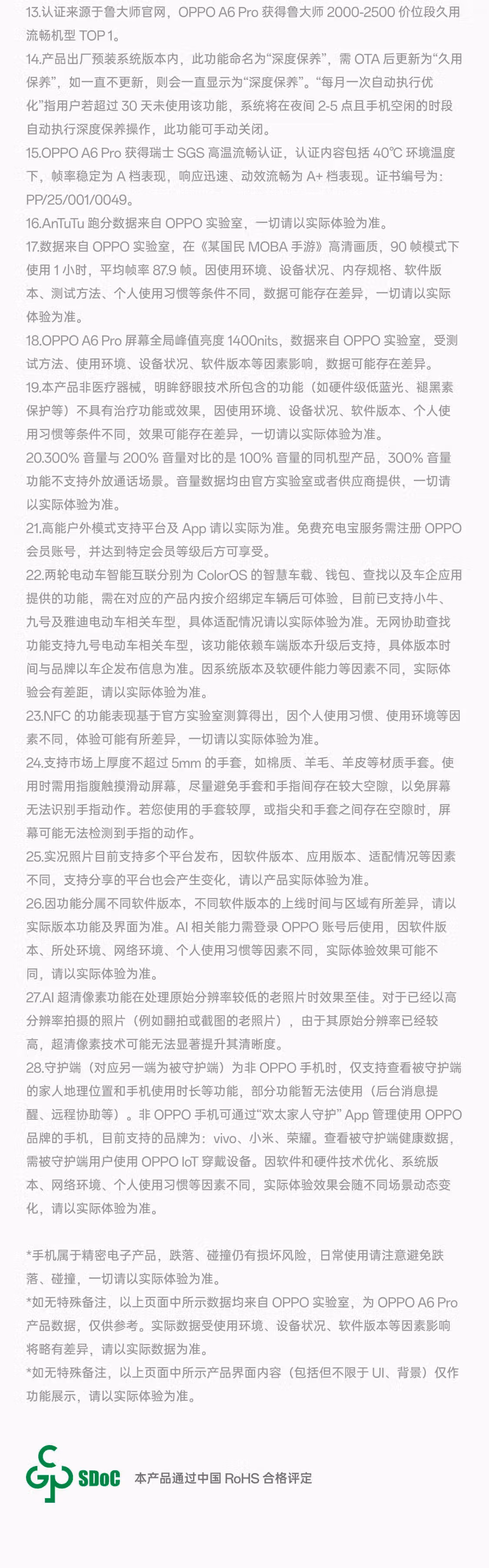 OPPO A6 Pro 国家补贴 新品5G耐用手机 越级流畅双引擎 7000mAh大电池 IP69防水 青云平步 16GB+256GB 标配