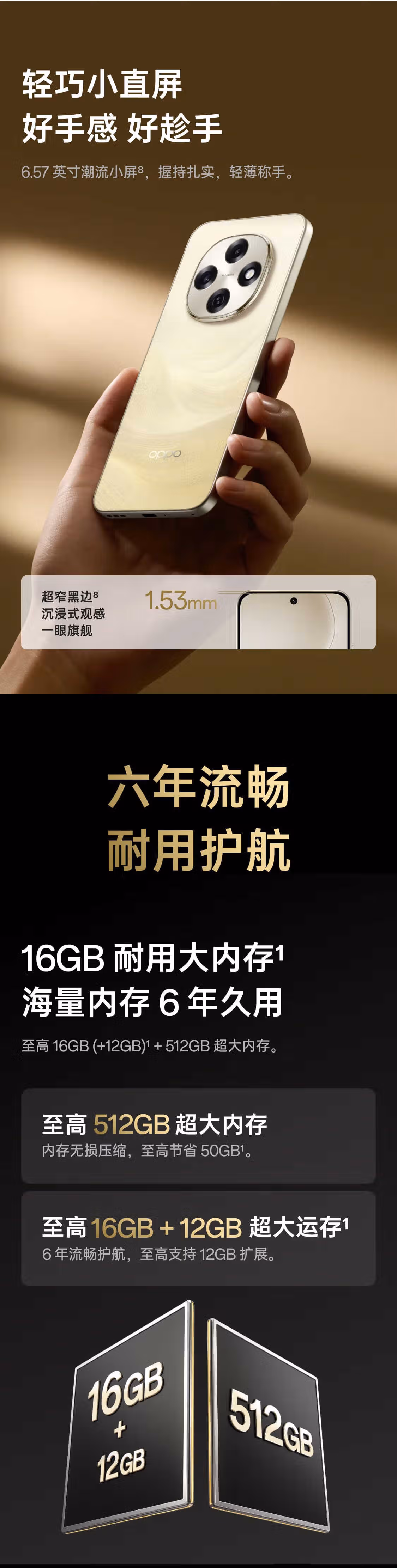 OPPO Reno15 16GB+512GB 星光蝴蝶结 12期分期可选 5G手机新品 K13x 超流畅ColorOS 15 IP69 防尘防水 【曜黑】8GB+256GB 12期分期选项