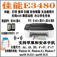 佳能TS3480打印机家用小型无线手机连接E3480彩色喷墨A4复印扫描 E3480无线打印复印扫描 套餐一无墨盒需配上使用