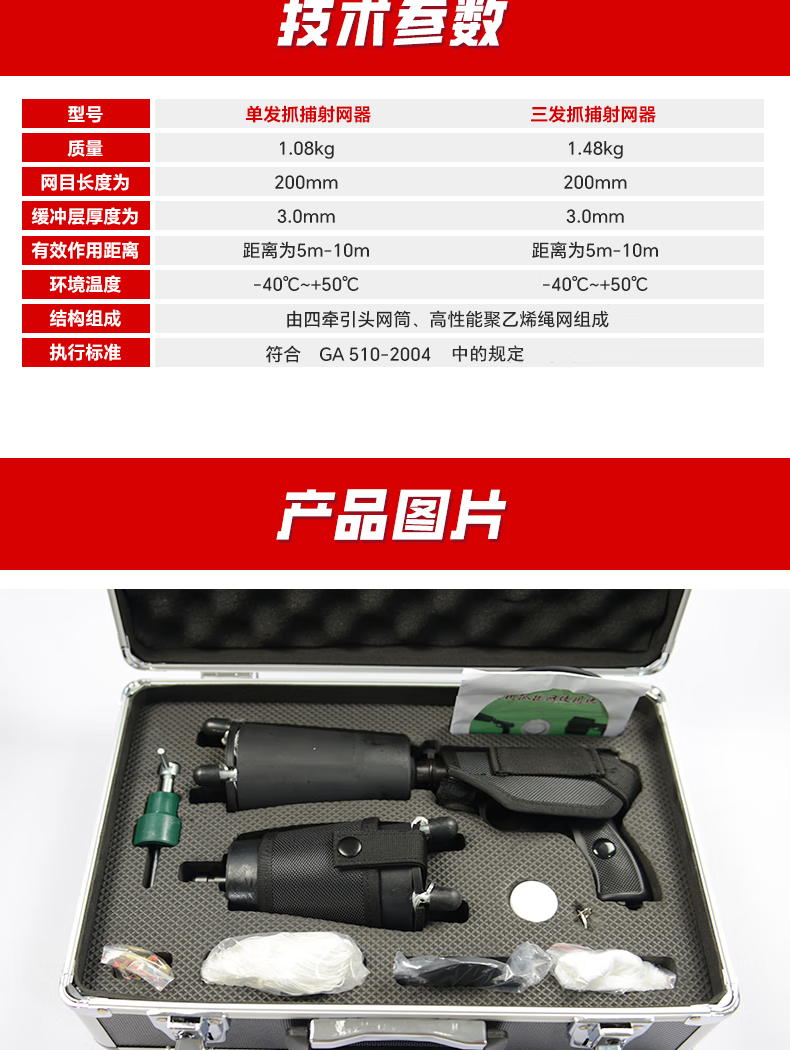 金力盾防暴抓捕网枪抓捕器单发三发远距离逮捕器防爆需采购证明发货 单发捕捉网