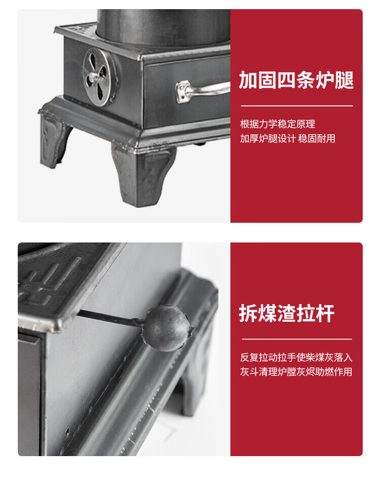 柏潮农村炉子烧煤憋了气室内取暖柴煤两用厚钢板家用做饭老式取暖 加厚型铁腿款直脖(多用途)送手套 加厚型