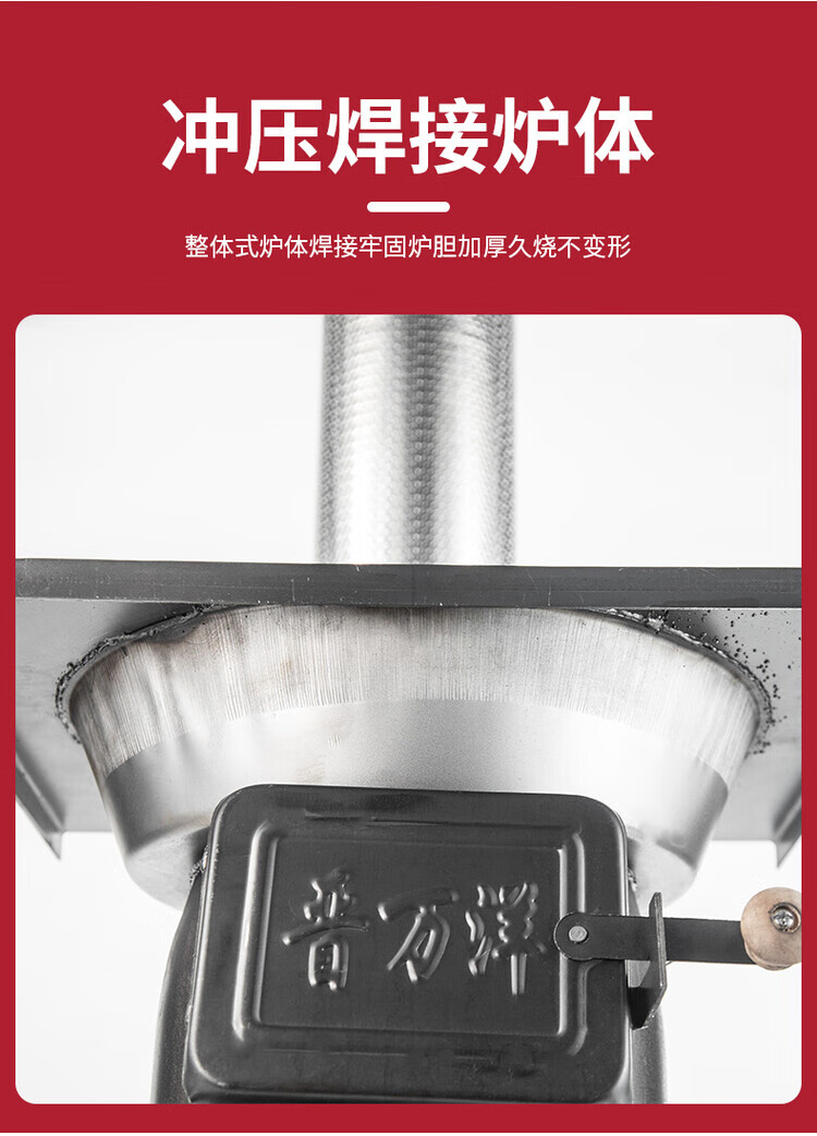 看每个地方的做工都很细致,焊接的也很饱满,冬天在家里接出去烟筒应该很方便,内胆很厚应该很耐烧
