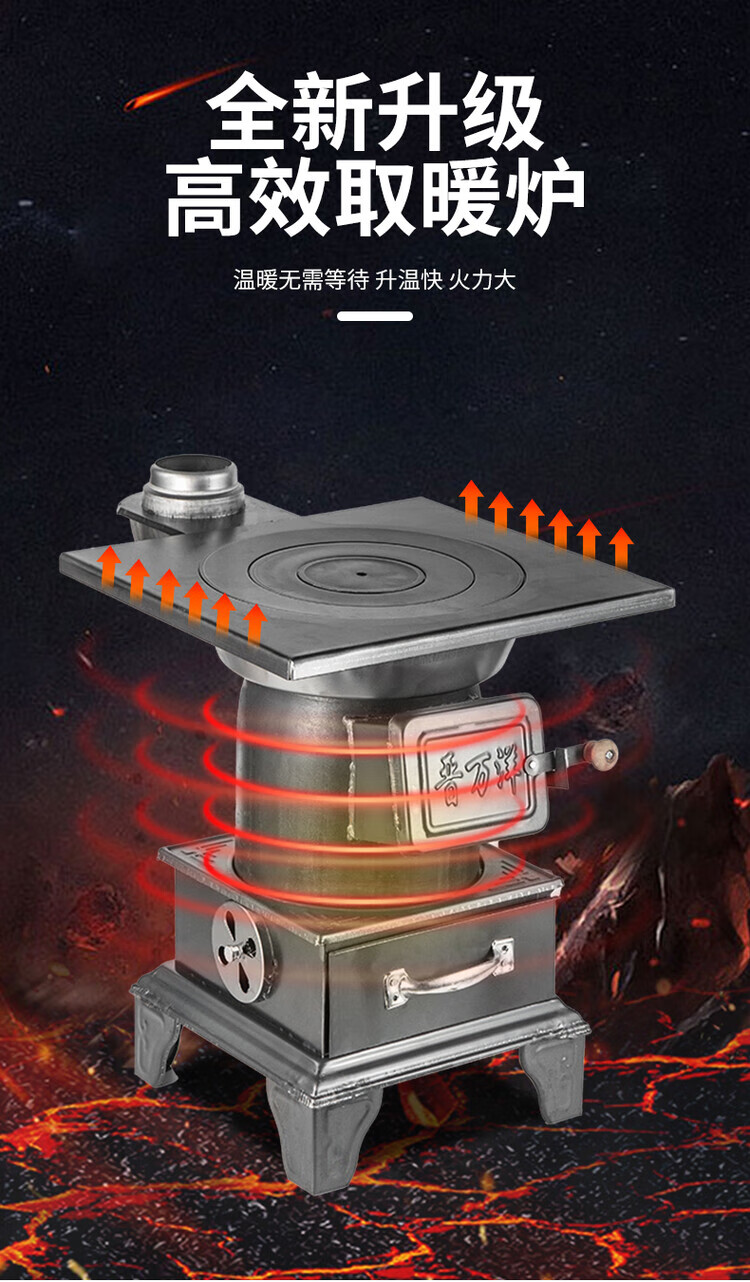映棠柴火取暖炉室内家用柴煤两用炉子冬天农村新型无烟采取暖炉烤火炉 家用取暖炉+1米烟筒2弯头+防烫网
