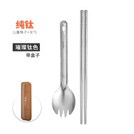 钛途(TITO TITANIUM)纯钛儿童筷子99.5%钛合金空心筷子户外餐具露营便携 冰花结晶+叉勺套装-璀璨钛色
