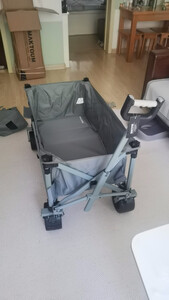 这款露营车大号的确实比想象中的大 但是一岁半的孩子躺在里面 正好 还可以放下点东西 轮插是铸铝的很结实 铝合金的车架也跟粗壮 车布套很厚实 完全是想要的梦中情车 这下带孩子出门再也不用抱着了