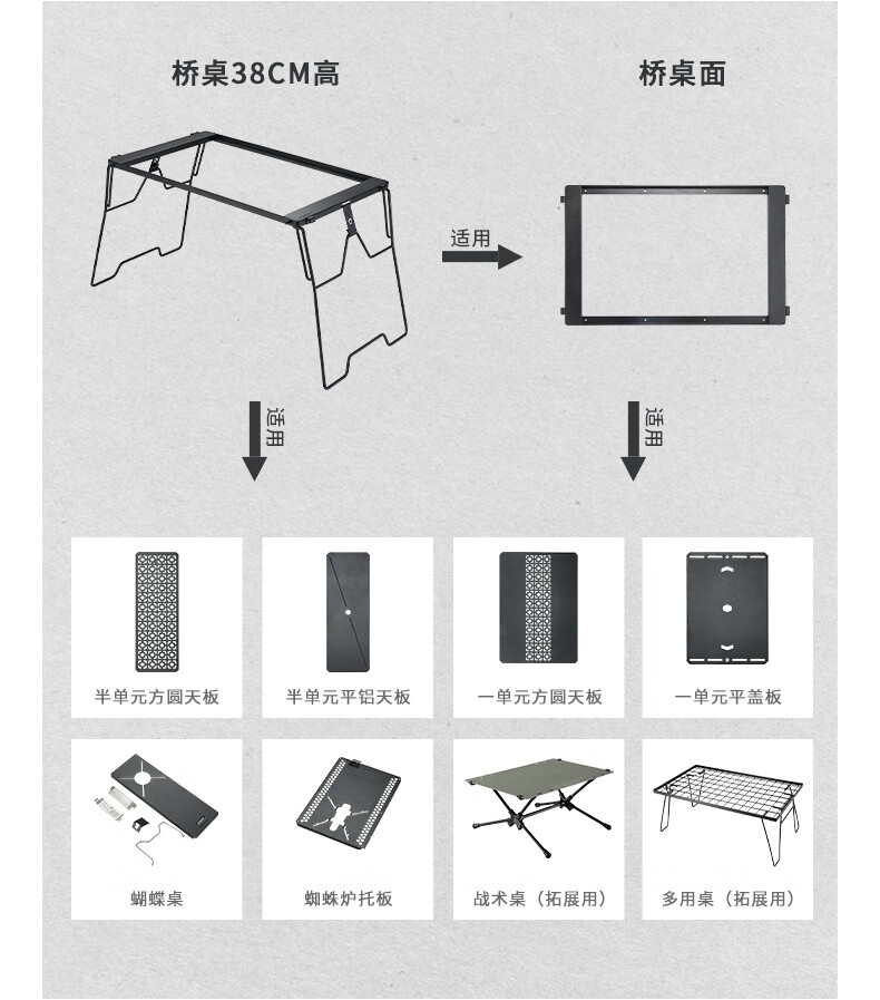 Campingmoon柯曼IGT组合桌桥桌科曼多功能露营折叠桌拓展蜘蛛炉模块单元板 GT-3+CK-25F-1P+CK-12BK-1P