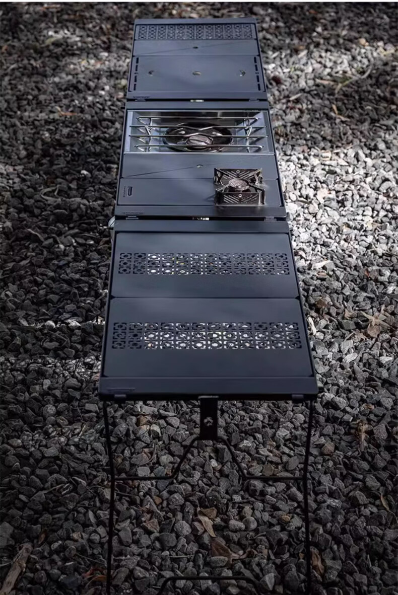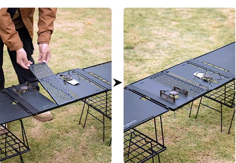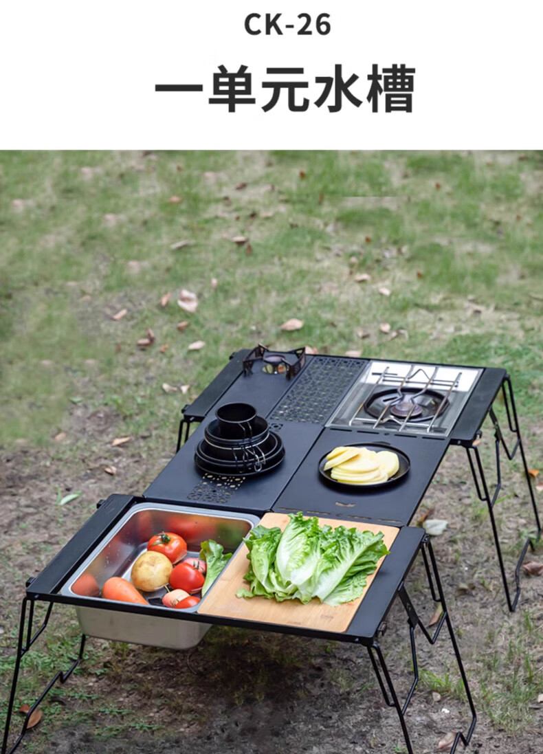 双十一又入手一张一单元铝合金板,作为茶桌沥水篮盖板,出去露营的时候把吃的放进篮子盖上单元板,不用担心野猫野狗来偷吃东西了。板子还可以当网桌天板,也可以作网桌之间的连接板,可玩性高。柯曼出品,必属精品!
