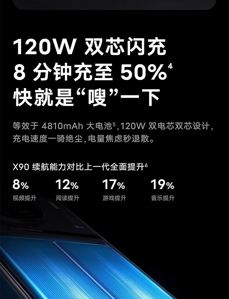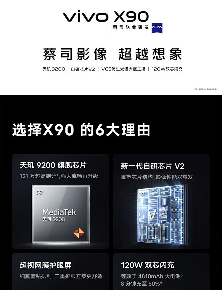 vivoX90 天玑9200处理器120W双芯闪充5G全网通拍照自研芯片V2芯片 冰蓝 8GB+256GB 单机+赠送第三方品牌快充