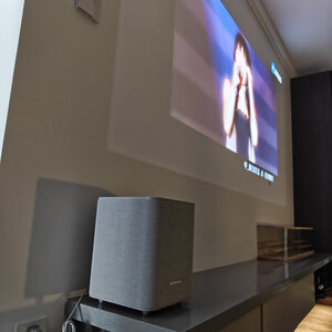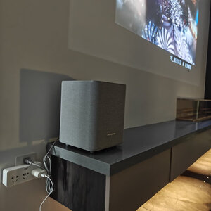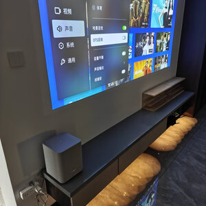等了几天,投影仪更新了版本以后音响就能适配了!对音质不是很懂,比投影仪一个声音好太多了,起码有环绕的效果,还是很不错的!要是再买两个效果应该更好吧😄