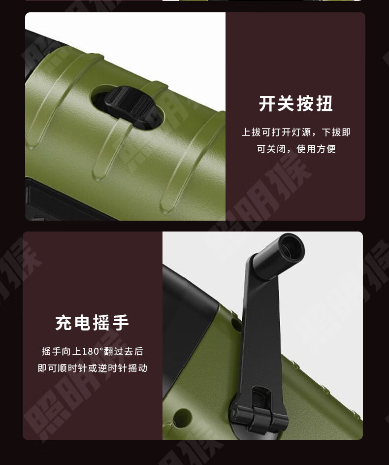 元族德国太阳能手电筒户外超长续航可手摇充电强光可野外生存超亮家用 军绿色至尊款