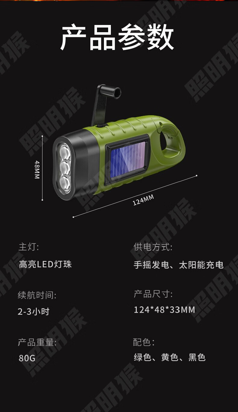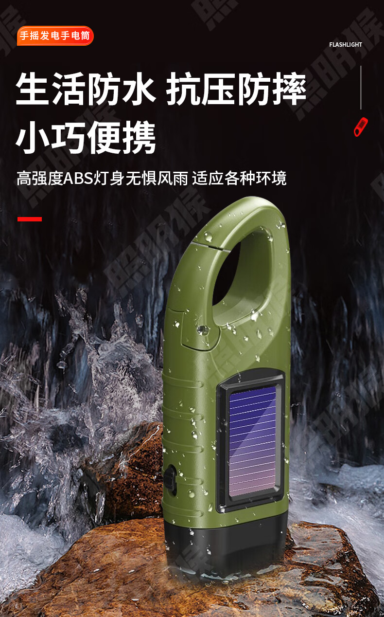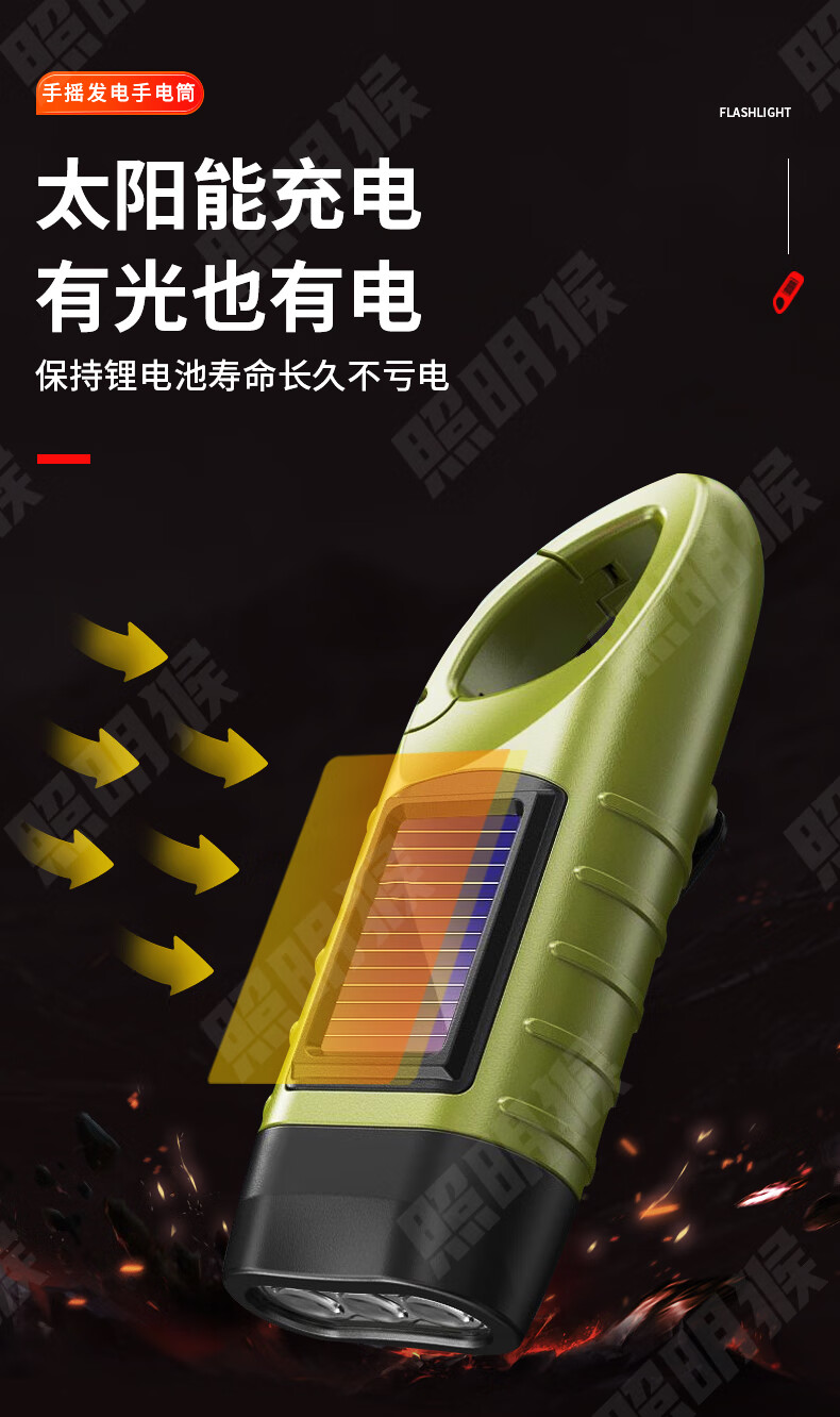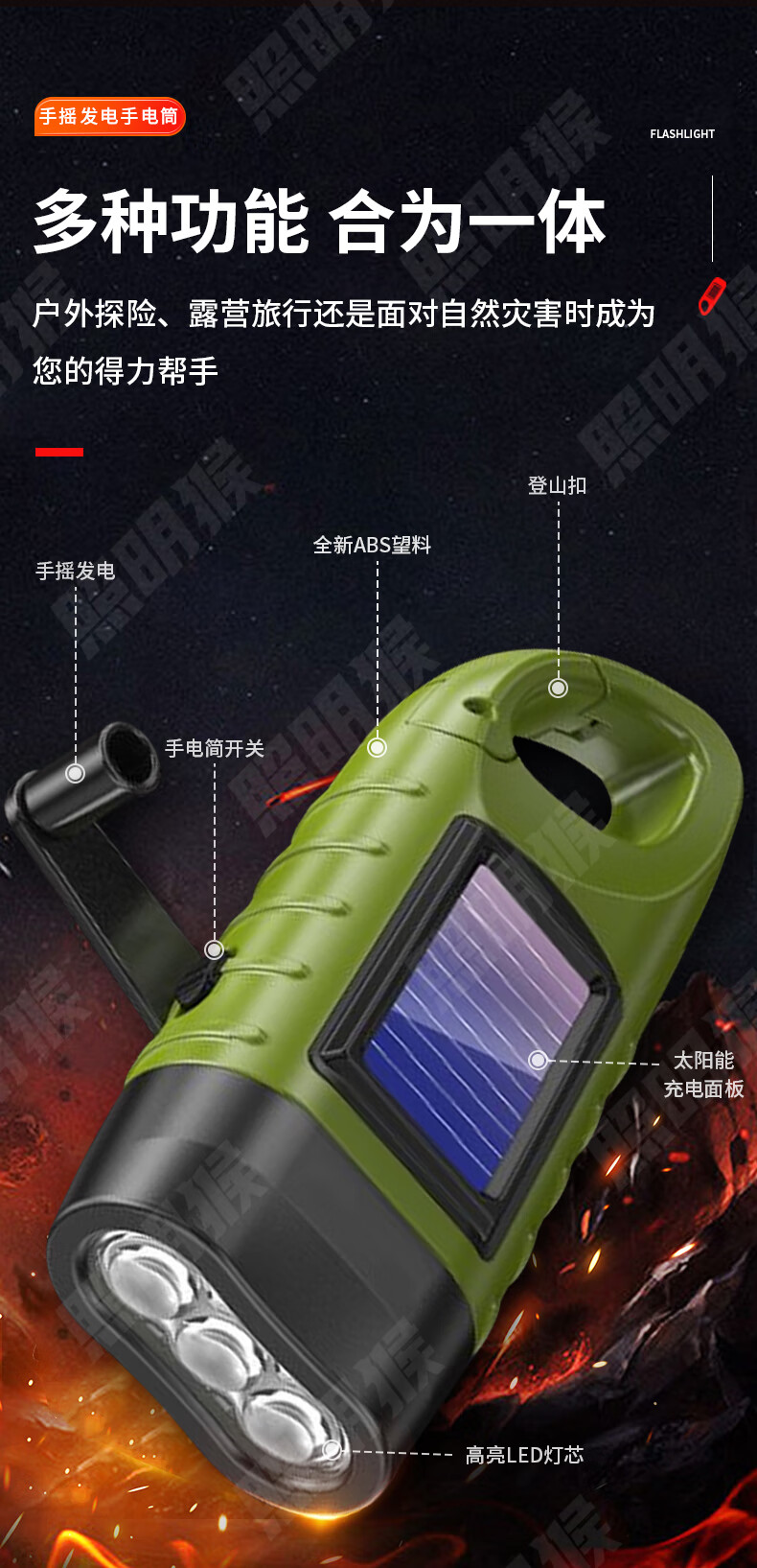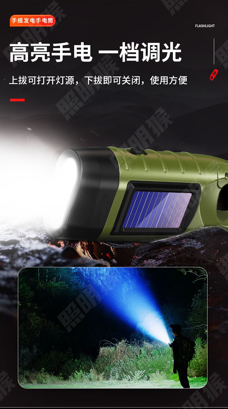 手摇发电机手电筒应急照明太阳能多功能LED户外迷你家用发电灯 【普通款】8800K普亮-8秒充电 【太阳能手摇式发电】三眼爆亮