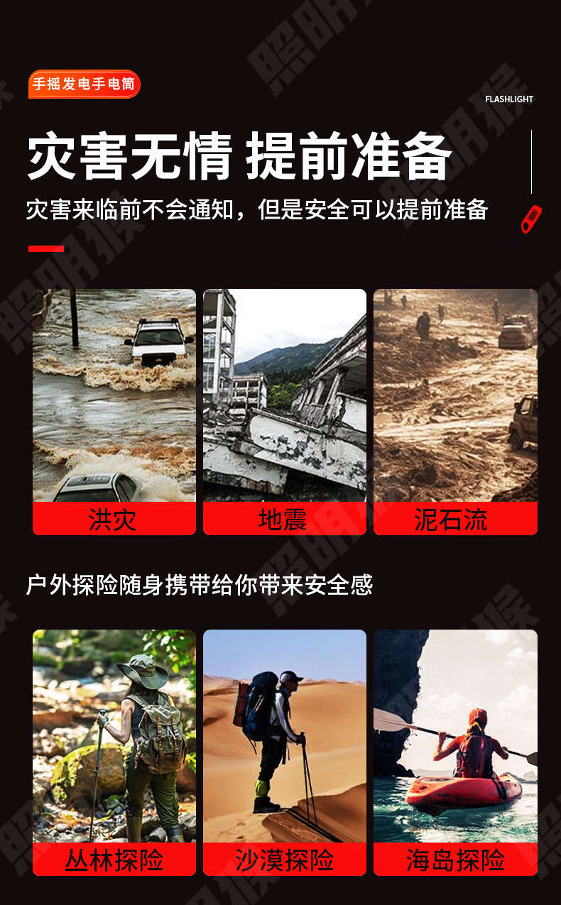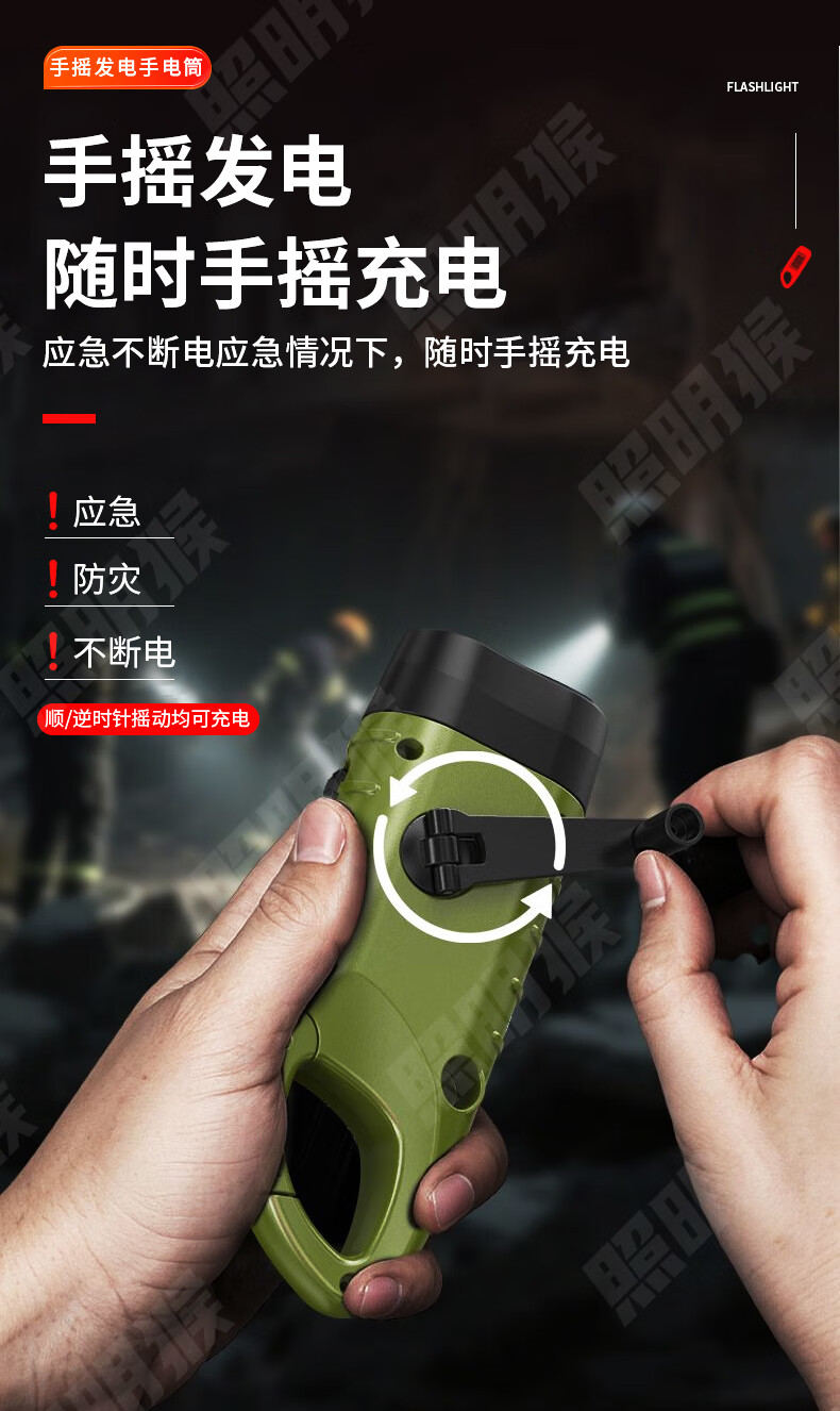 哈拿 携便式多功能手摇发电手电筒户外应急收音机报警求救灯 S3013手摇发电收音机灯