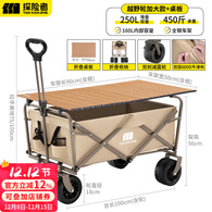 探险者露营车露营推车户外可折叠推车野餐便携拉杆手拉车桌板野营 【加大越野卡其+折叠桌板】250L