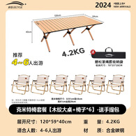 北岳户外折叠桌子便携式蛋卷桌可折叠野餐桌摆摊烧烤桌椅露营用品套装 克米特椅*6+木纹大桌+包