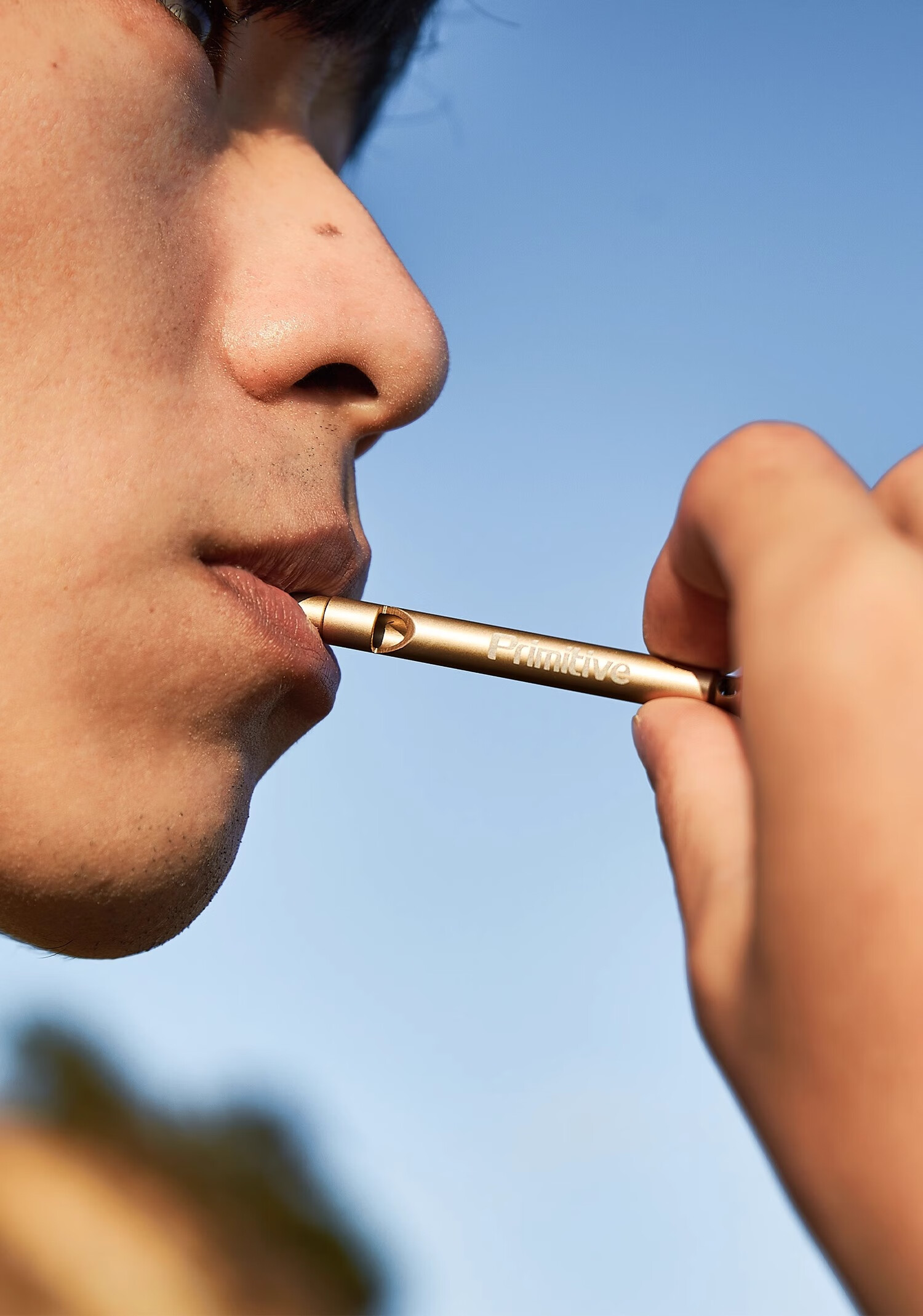 原始人 哨子高音超响金属求生哨高端口哨乐器户外口哨报警哨子 卡其色短款
