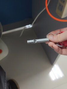 收到手的时候才发觉这个哨子是真的又细又小啊,应该说跟电线差不多粗,不过虽然这样,但是哨子的声音一点不比我原来那个10来块买的哨子声音小。