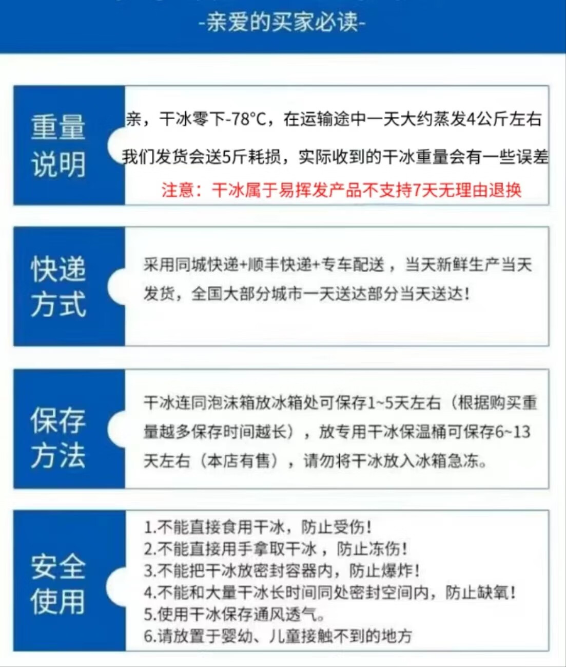 干冰当日达次日达食品级火锅店干冰块食用降温幼儿园实验用干冰 苏浙沪皖8.5公斤送5斤