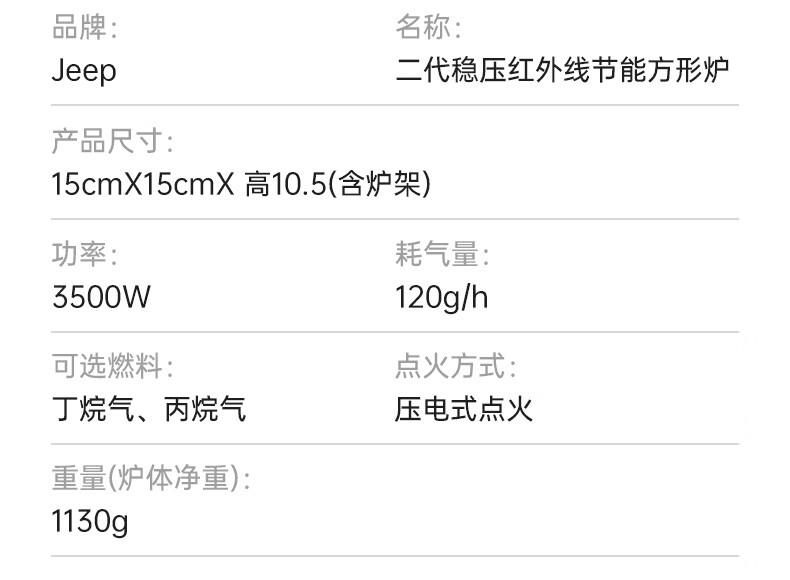 好喜欢,颜值高,价位合理,家用是非常够用的,小巧的一个非常便捷,反正我是真的很喜欢。 火力大小:刚好 适用场景:野外露营 续航时长:很省的 产品做工:精美 适用人数:4-6