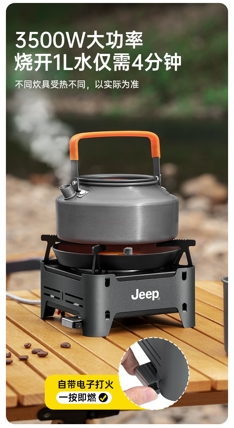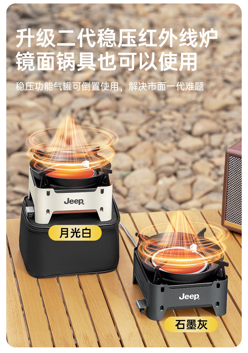 JEEP户外卡式炉户外炊具煮茶炉红外线防风分离式炉头露营 石墨灰二代红外线节能方形炉