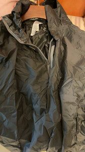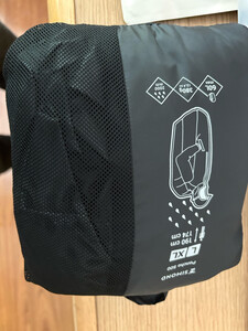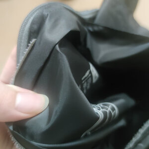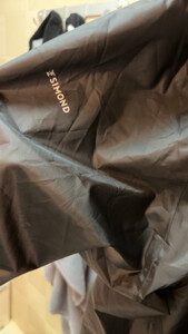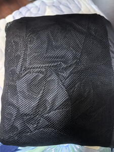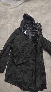 轻薄宽松,自带收纳袋设计,就是被折叠的全是印子,不知道是否影响使用寿命,总体来说价格也不便宜,希望能使用长久,后背设计的有背包容纳部分!