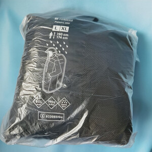 迪卡侬的这款雨衣,带背包空间的设计,我买来是开电瓶车用的,目前还没拆封,看包装就很高档的样子。这款雨衣经常断货,应该是雨天徒步首选。