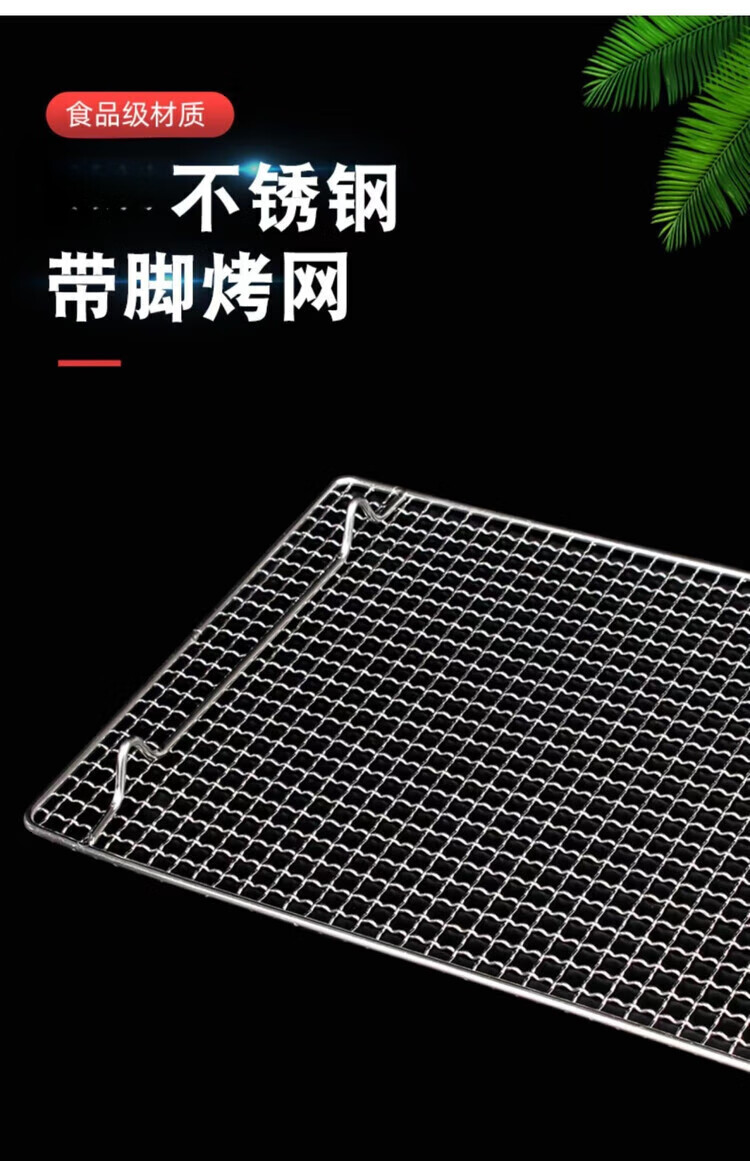 烧烤网片316不锈钢食品级网眼长方形带脚控油架油炸加厚加粗网格 带脚长20cm*宽20cm