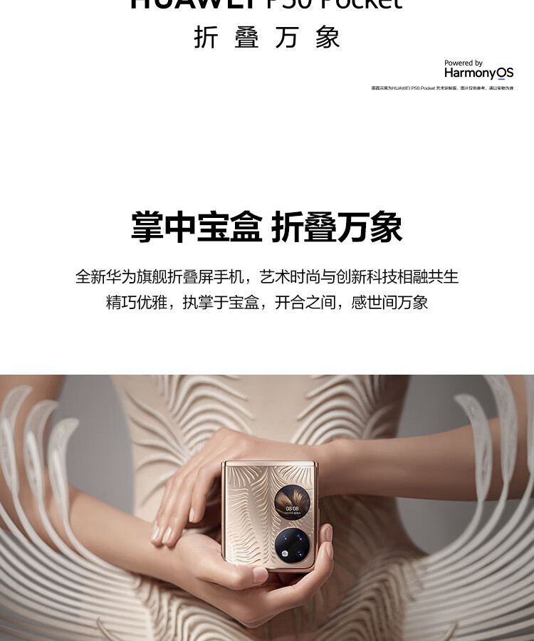 华为翻盖 折叠屏 P50 Pocket【全新 未拆封 未激活 全国联保】宝盒形态设计,120Hz高刷新率内屏 鎏光金(艺术定制版) 12GB+512GB