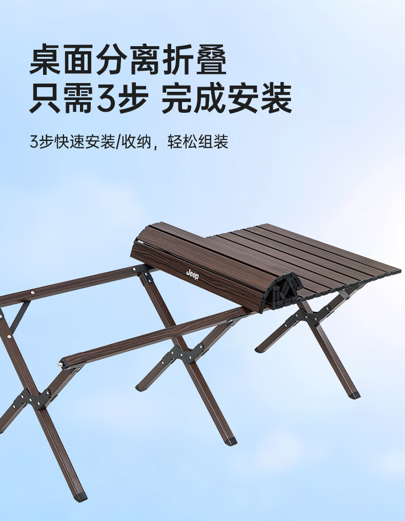 JEEP吉普户外折叠蛋卷桌露营便携式烧烤野餐桌子野营茶桌全套装备 超大号铝合金-黑胡桃色