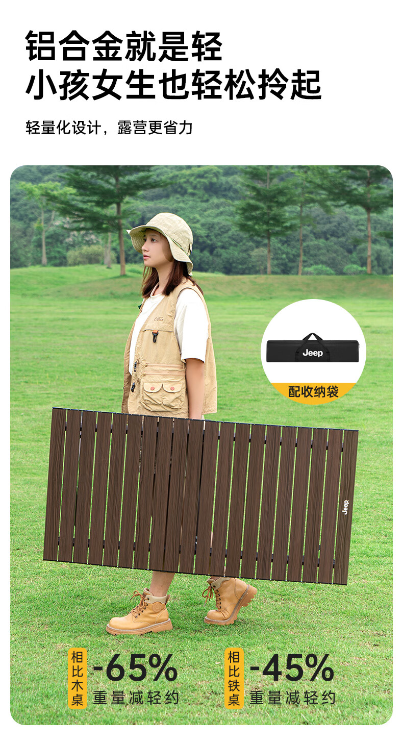 JEEP户外折叠桌便携式露营桌子野餐桌椅套装野营用品装备铝合金蛋卷桌 特大特长黑胡桃木色铝合金