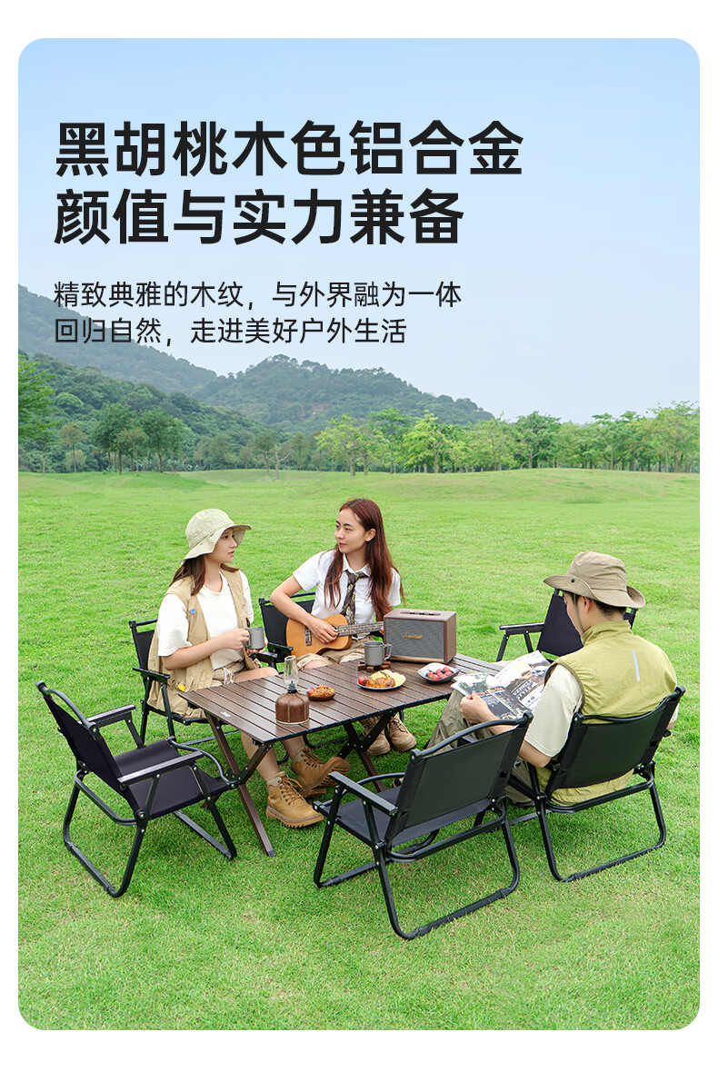 这款蛋卷桌总体非常好。做工精细,用料考究,纹理很好看,比实木蛋卷桌更适合野外使用,这款产品性价比很高,值得购买。
