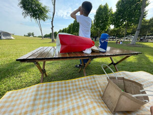 露营桌非常不错 便宜但是质量不差 没有毛刺异味 而且空间挺大 可以放不少东西 收起来也可以放电瓶车上 带孩子出门玩也挺方便的 这个价格质量很推荐