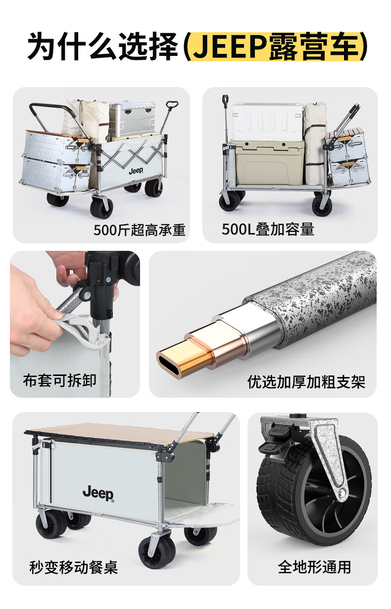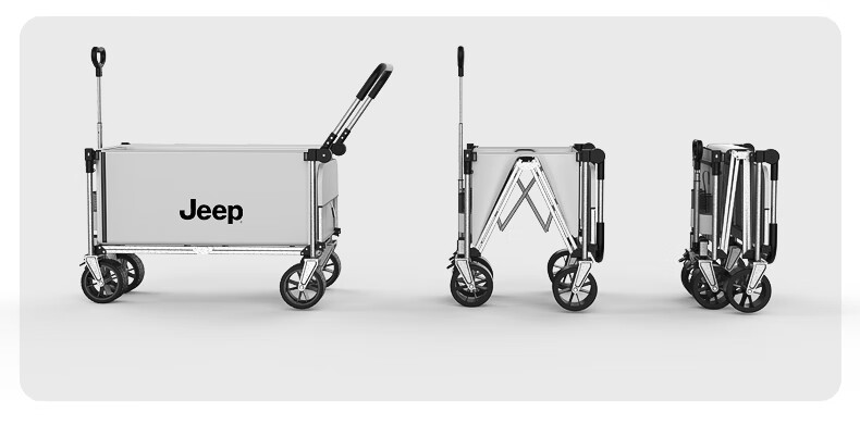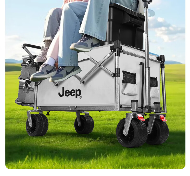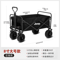 JEEP/吉普露营推车推拉一体户外野营手推车摆摊折叠拉快递便携 黑色L号【越野轮】专业版