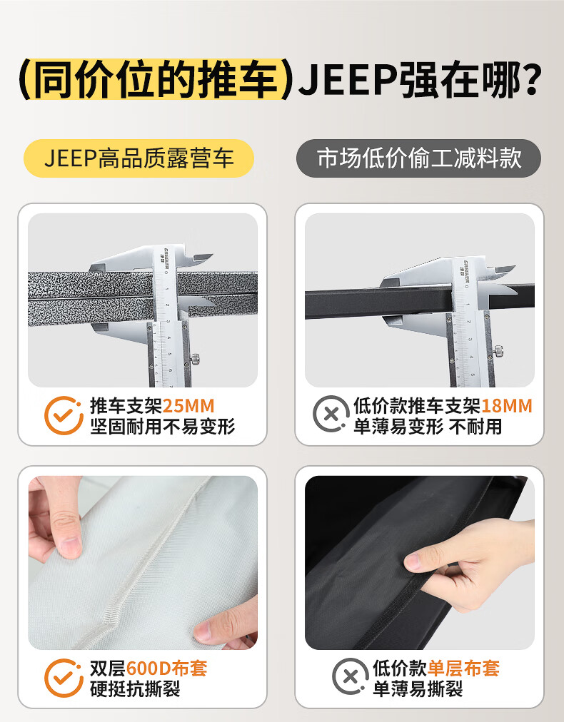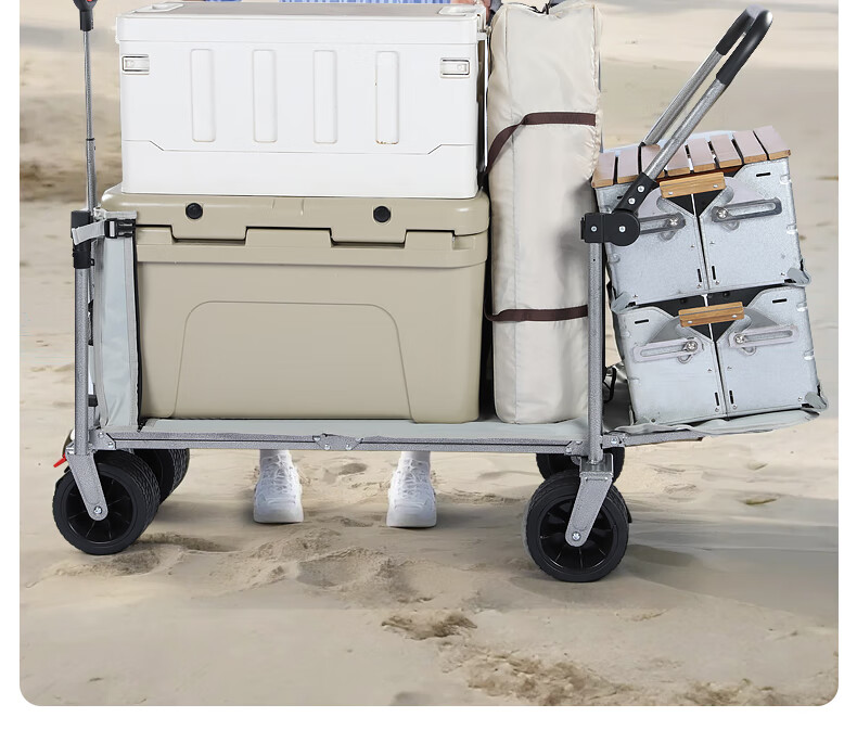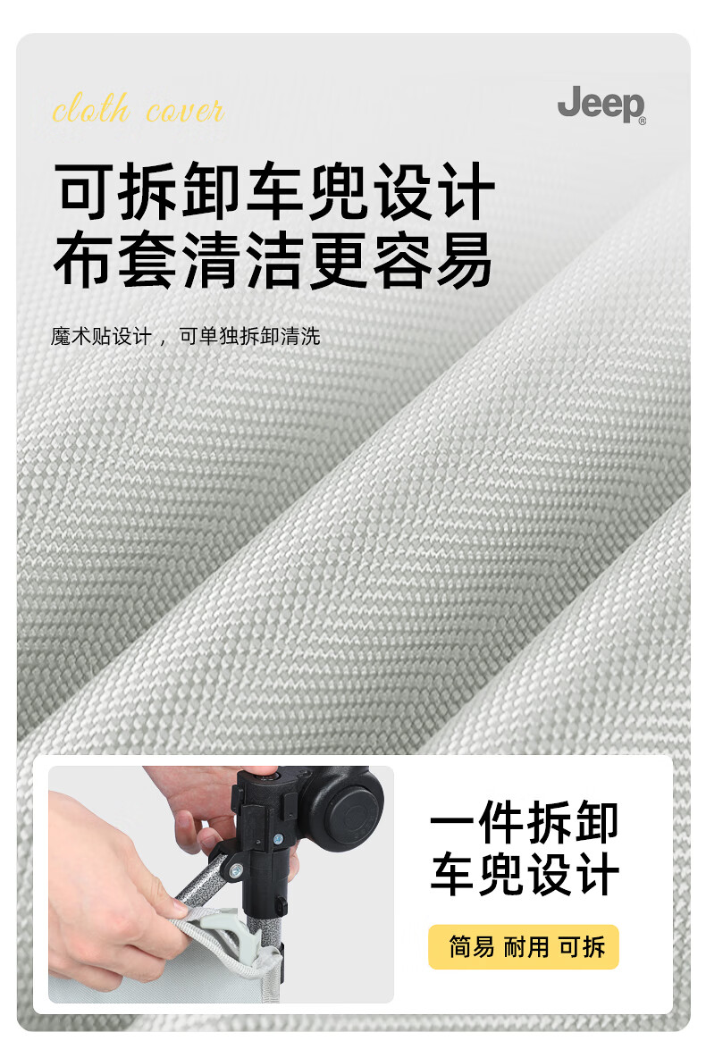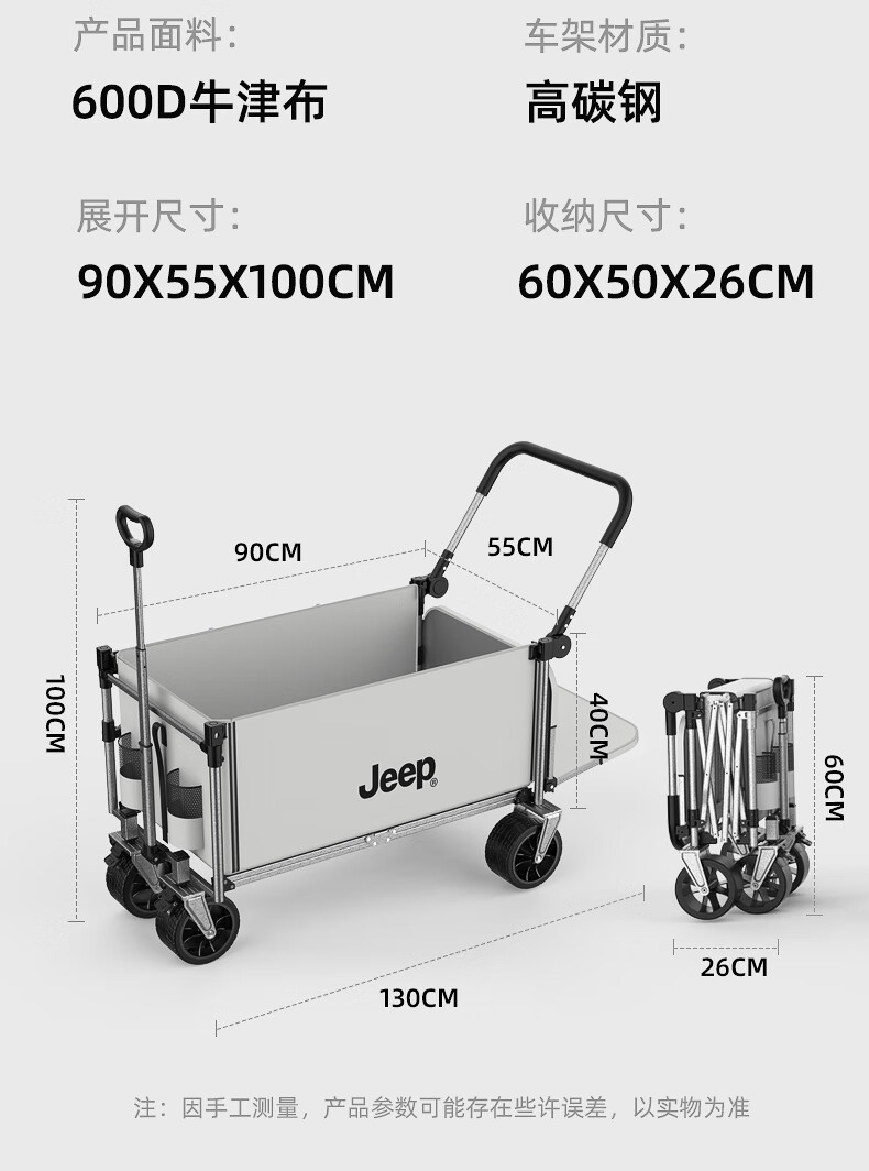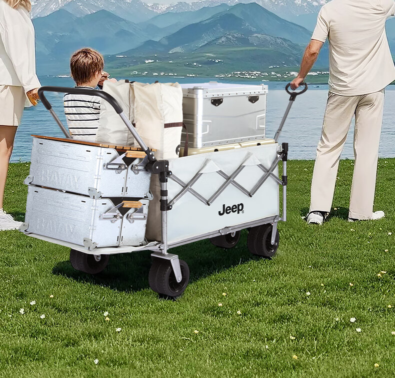 JEEP露营推车折叠野营手推车儿童可躺旅行车野餐推车摆摊地摊大号 墨烬黑【推拉一体 升级大容量】