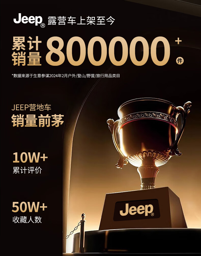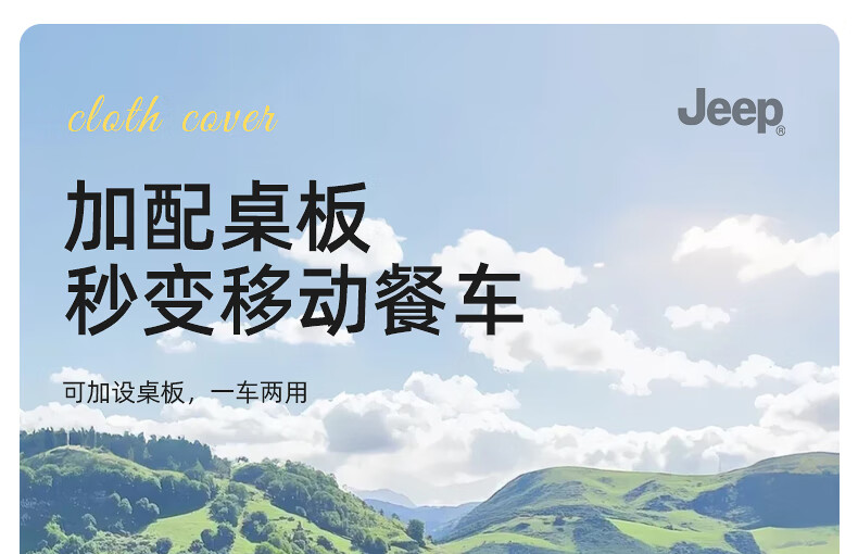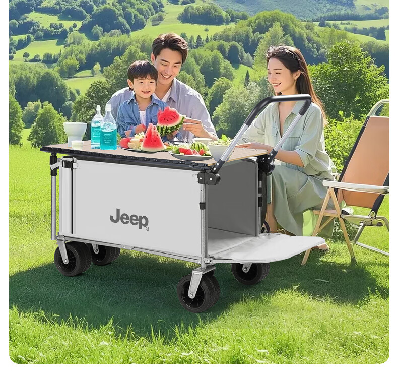 JEEP吉普露营车户外可折叠手推野餐营地超大拖车拉杆摆摊小推车 绿咖色+木纹桌板
