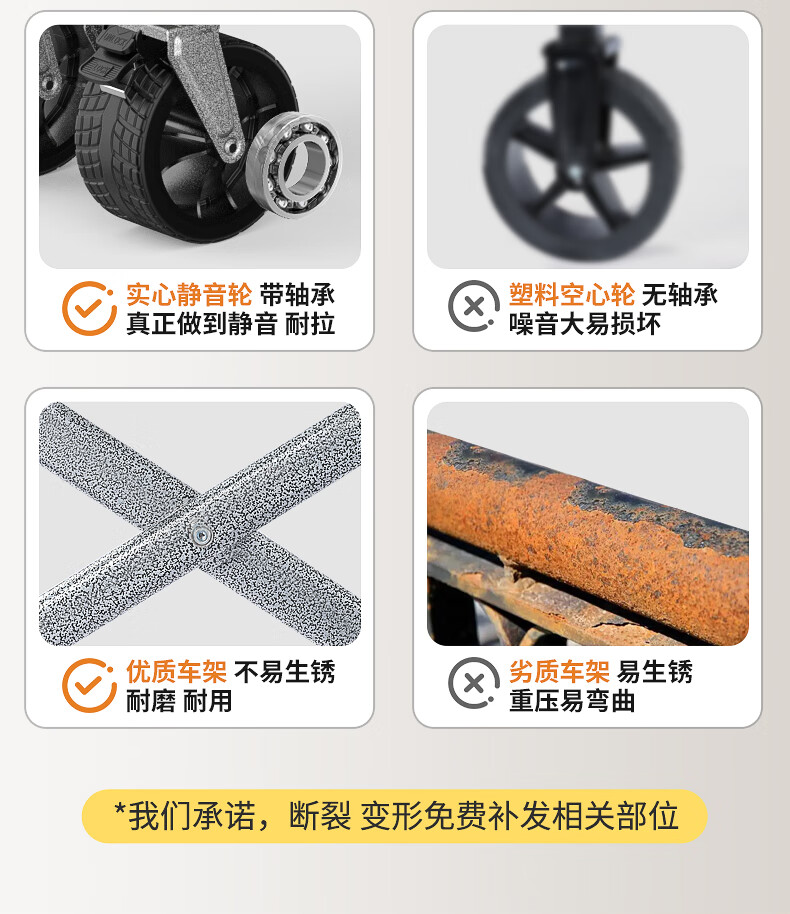北欢露营车折叠车溜娃车买菜车狗狗宠物推车可开后斗F02黑+桌板