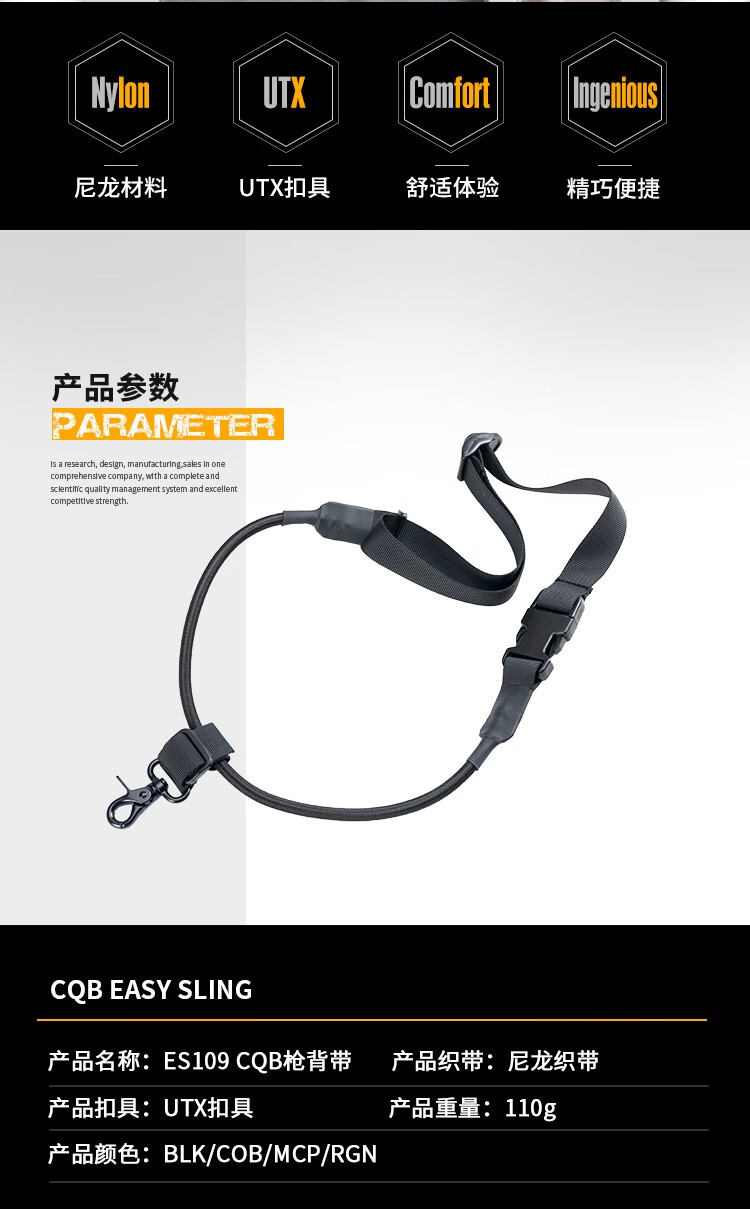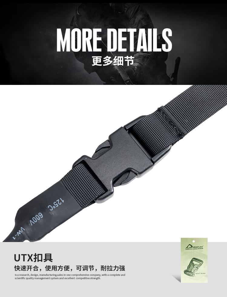 户外新款尼龙斜跨战术背带绳 美式单点战术枪绳战术任务绳现货 黑色