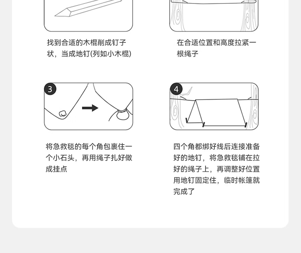 伯希和(Pelliot)应急保温毯户外露营防寒保暖急救毯野外生存防晒便携压缩毯 木炭银-1枚装