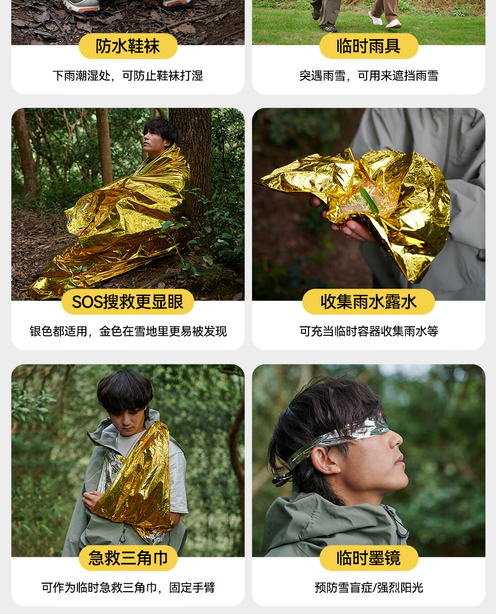 地震应急包户外野外生存保命毯急救毯救生毯保温毯防晒毯末日装备 5条 金色急救毯(160*210CM)