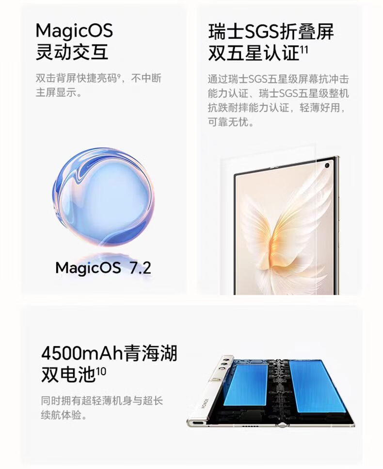荣耀(HONOR) Magic V Purse 旗舰新品手机 荣耀 V Purse 荣耀折叠屏 2K超清大屏 5G手机4500mah青海湖电池 2 冰川蓝 16GB+256GB