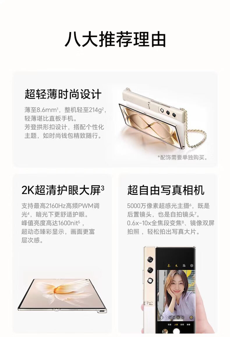 荣耀现货速发 V Purse展机 荣耀V超长续航折叠国行5G通 山茶金展机 16+512