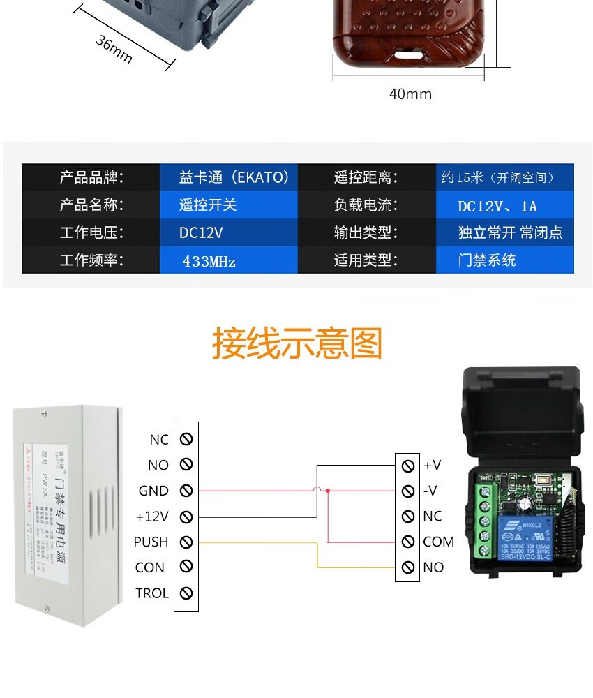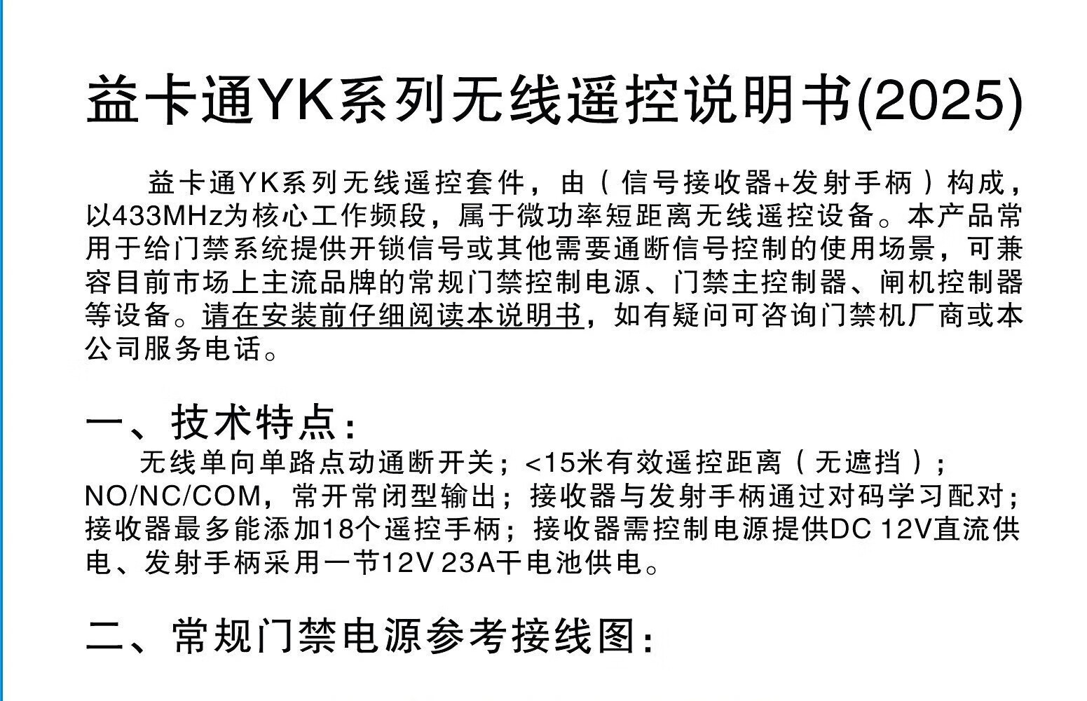 益卡通门禁遥控出门按钮开关 无线门禁遥控开门器 433MHz门禁出门按钮 YK102遥控开关(1拖2)