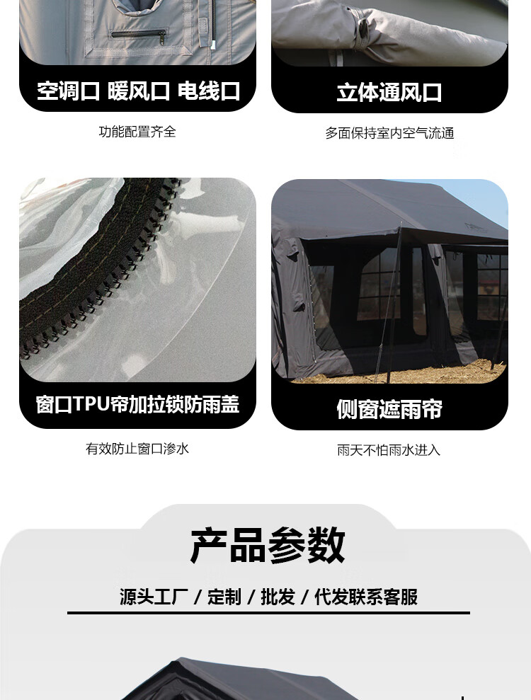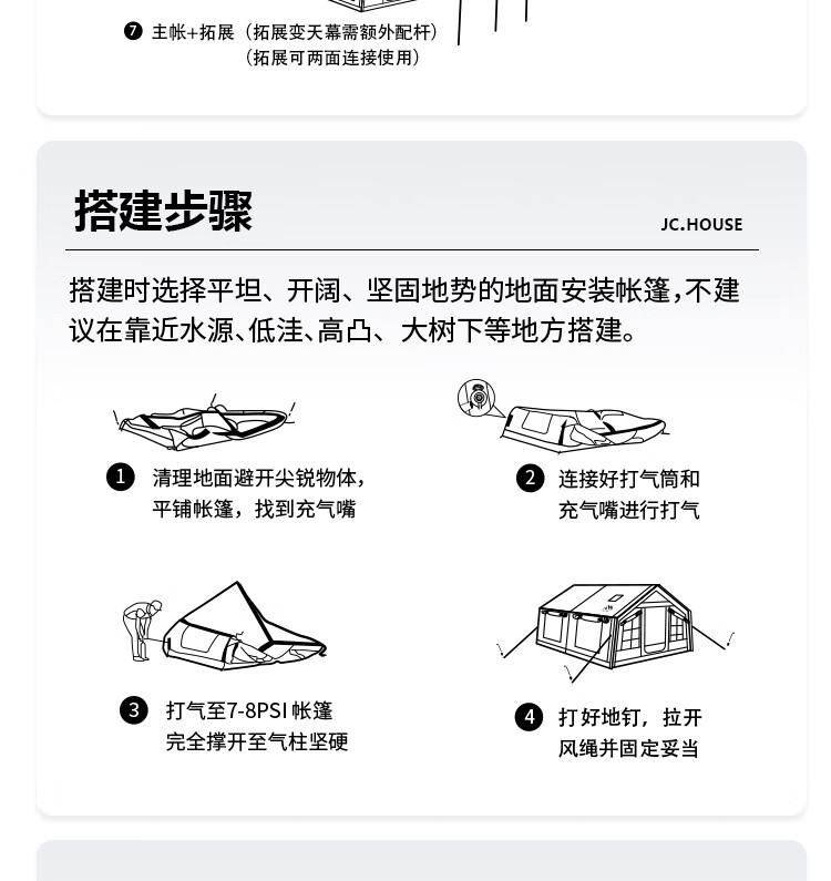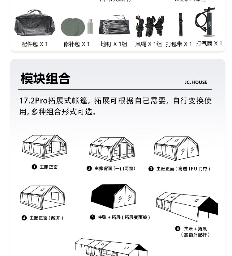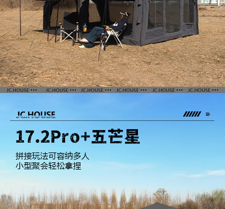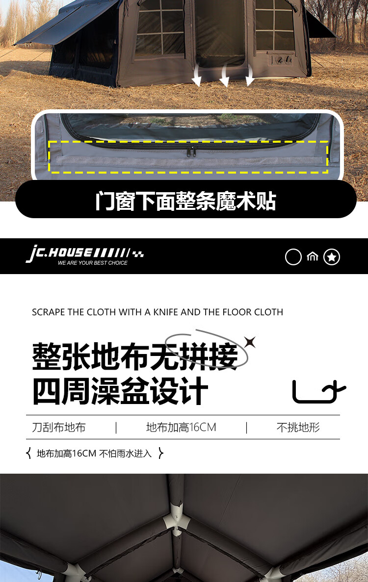 京诚豪斯JcHouse17.2㎡pro320克科技棉充气帐篷露营过夜屋脊帐 豪斯(坦克灰色)17.2mpro充气帐