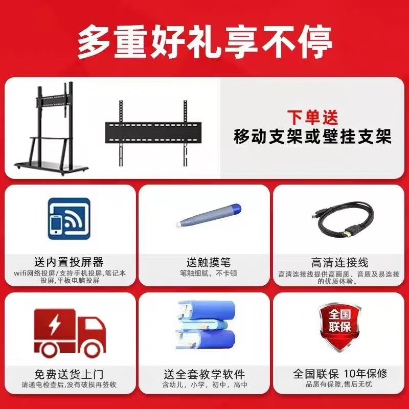教学一体机触屏会议平板电视多媒体智能电子白板书写学校培训教育幼儿园大屏触摸触控一体机 85寸/86寸/适用20-30人/赠送推车 【教学标配】win10(i5/8G/128G)