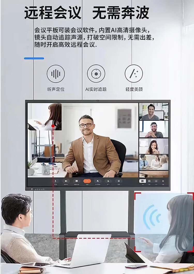 会议一体机视频会议平板多媒体教学一体机触摸屏电脑智能互动电子白板 会议触控大屏100寸 86寸会议一体机 安卓系统+推车