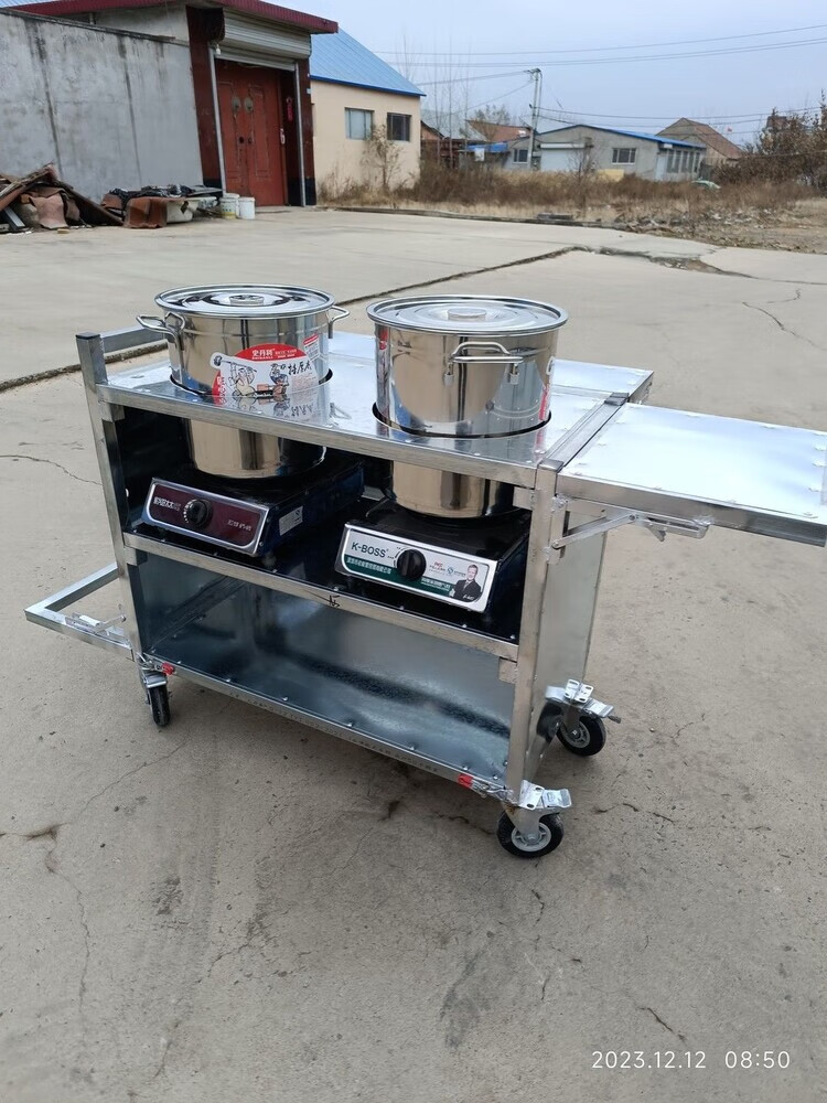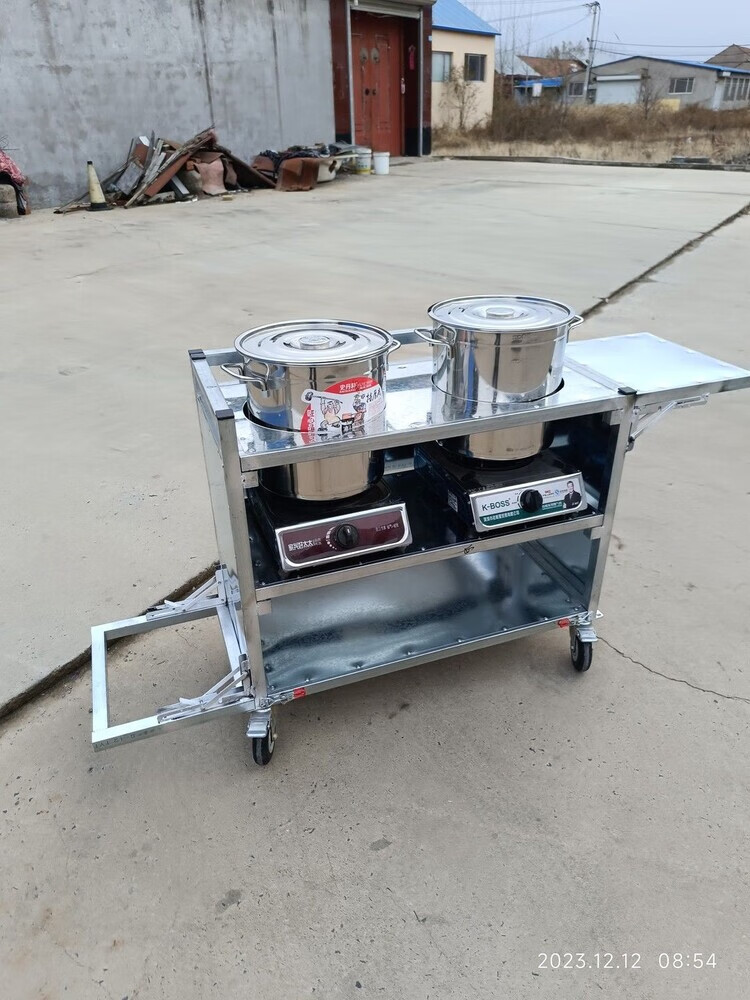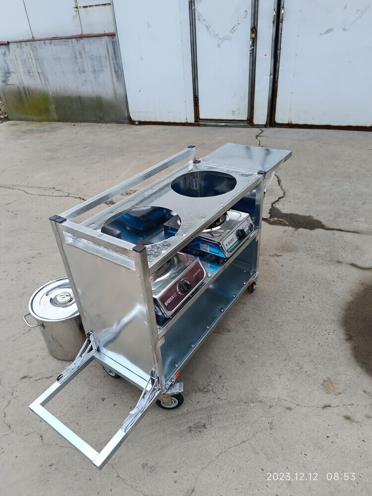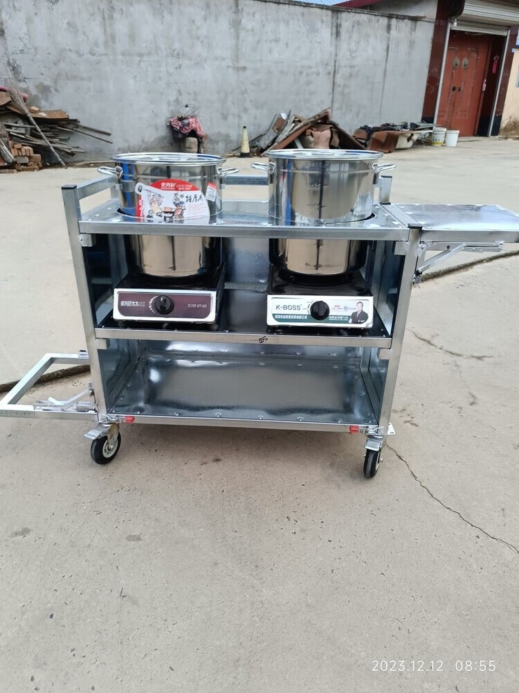 柏潮多功能金属承重便携新款可移动带轮室外商用煮汤卤味可折叠摆摊车 D左加长3层+气瓶架 不带广告框