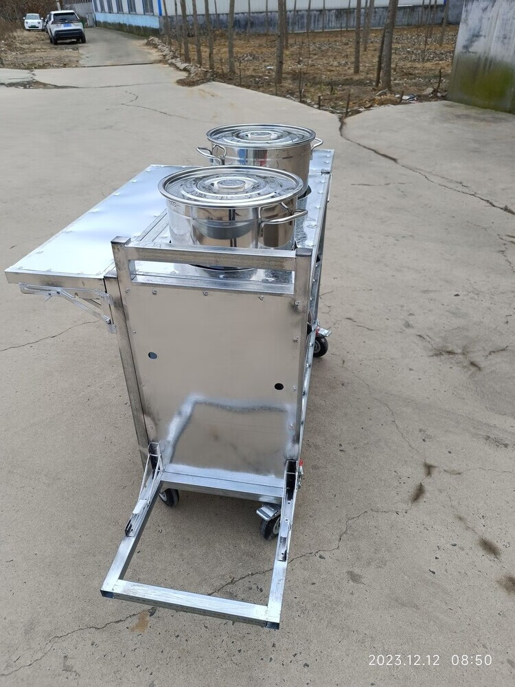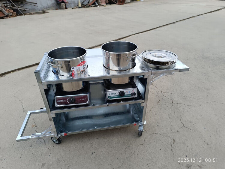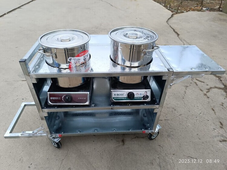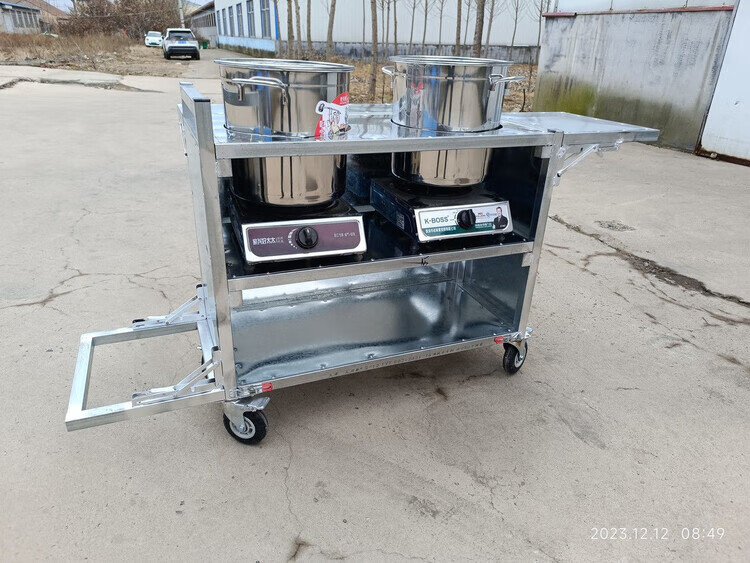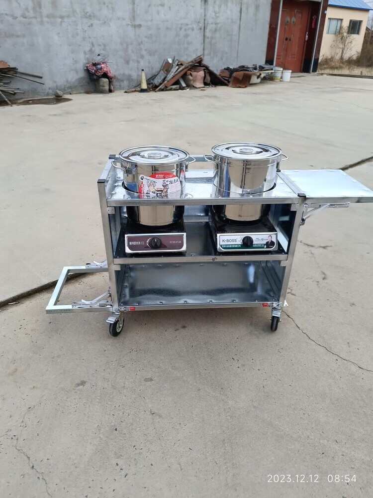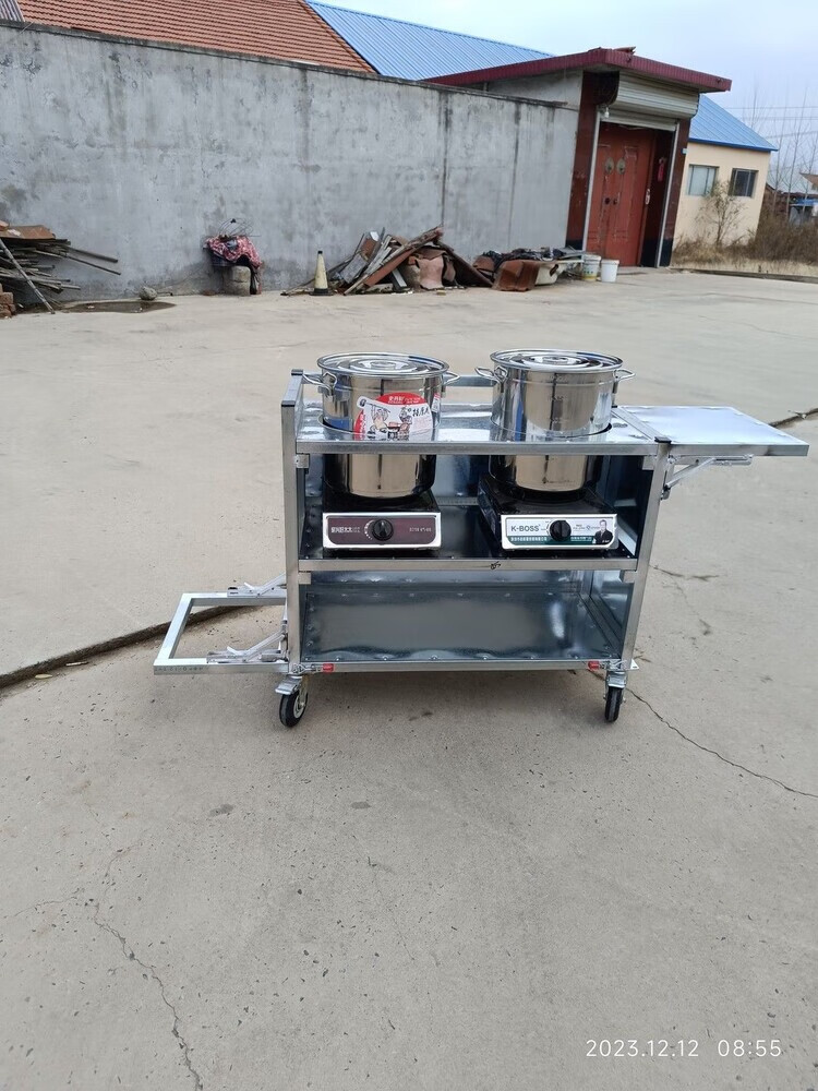 柏潮多功能金属承重便携新款可移动带轮室外商用煮汤卤味可折叠摆摊车 D左加长3层+气瓶架 不带广告框