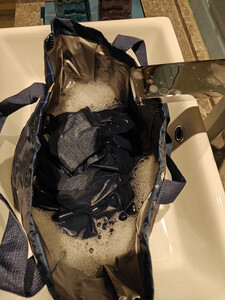 使用了一下,防水性能挺好,空间也够大,收起来后小小的,外出携带方便,里面是一层类似塑料布的材料,不放水时是软的,装上水后可以立住。