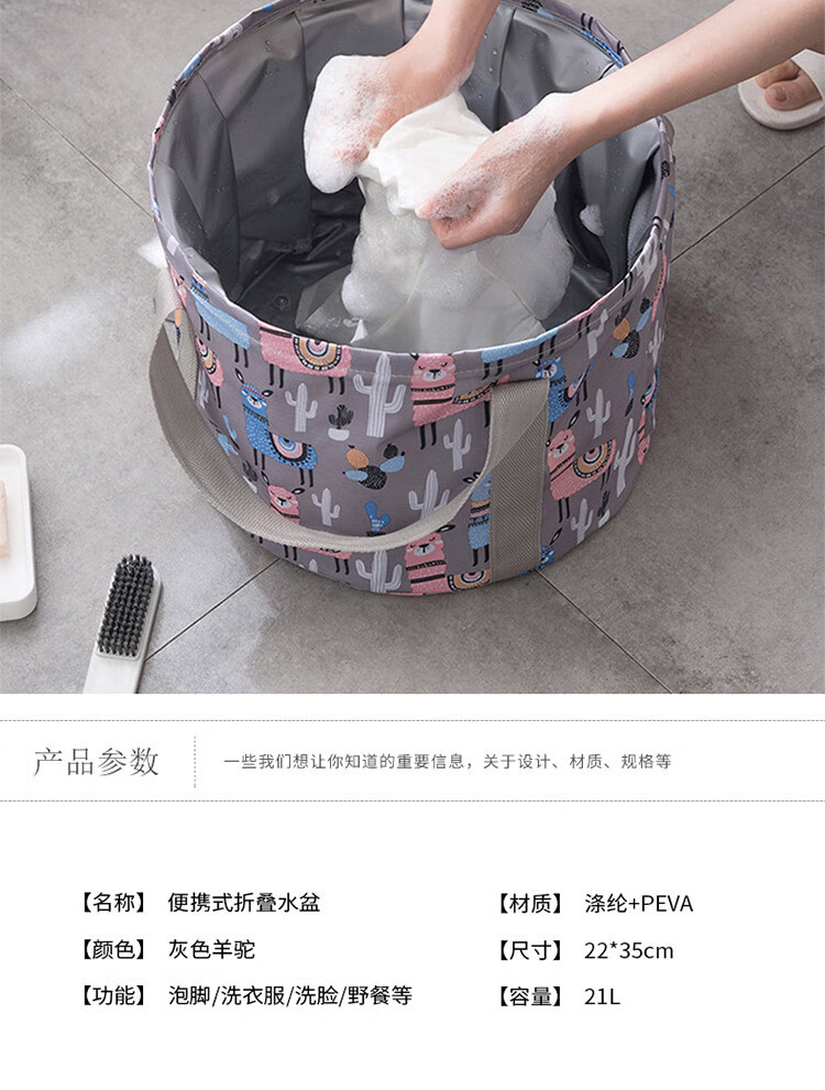 JAJALIN 便携式可折叠户外旅行泡脚袋洗衣盆洗脚水桶脸盆洗脚 灰色羊驼
